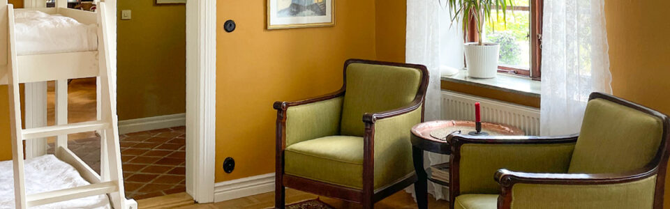 Här finns plats för familjen eller om ni är fler än två som vill bo ihop. Rummet har två sköna resårmadrasser och en familjevåningssäng där två barn kan dela på nedre bädden. Till det lilla barnet kan vi sätta in en barnsäng. Detta rummet har ett eget rymligt badrum med dusch och toalett.